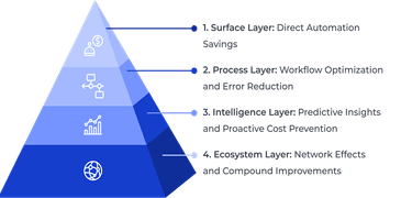 Traditional cost reduction follows predictable patterns: cut 10% from operations, save 10% overall. Ecosystem-layer AI breaks this linear relationship. Organizations operating at this level create a snowball effect where improvements multiply faster as more partners join their