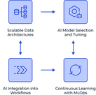 When you are certain your AI project is stable and proven to be reliable in real-world scenarios, expand it into connected processes and organization-scale workflows. Key points here are establishing data pipelines and governance standards to ensure the quality of data